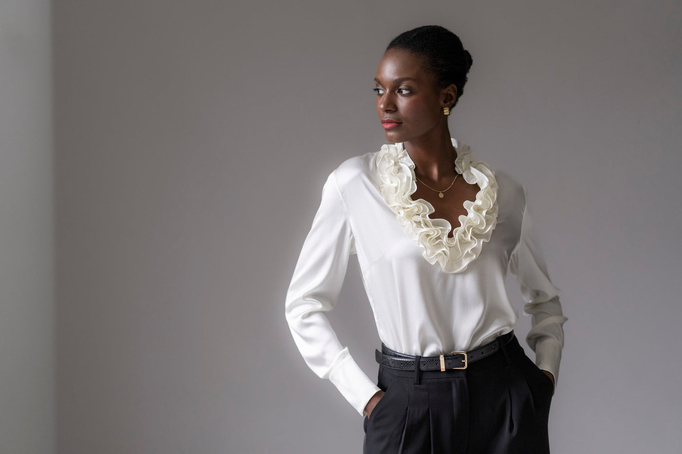 Bold yet refined, our statement shirts are designed to turn heads. With elegant tailoring, standout details, and timeless silhouettes, each piece makes an impression without saying a word. Whether it's an oversized bow, dramatic collar, or crisp white poplin reimagined, these are shirts that speak for themselves.