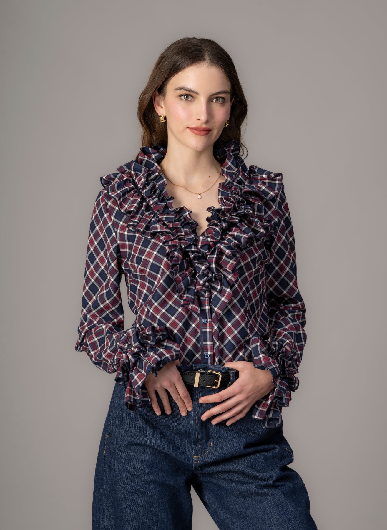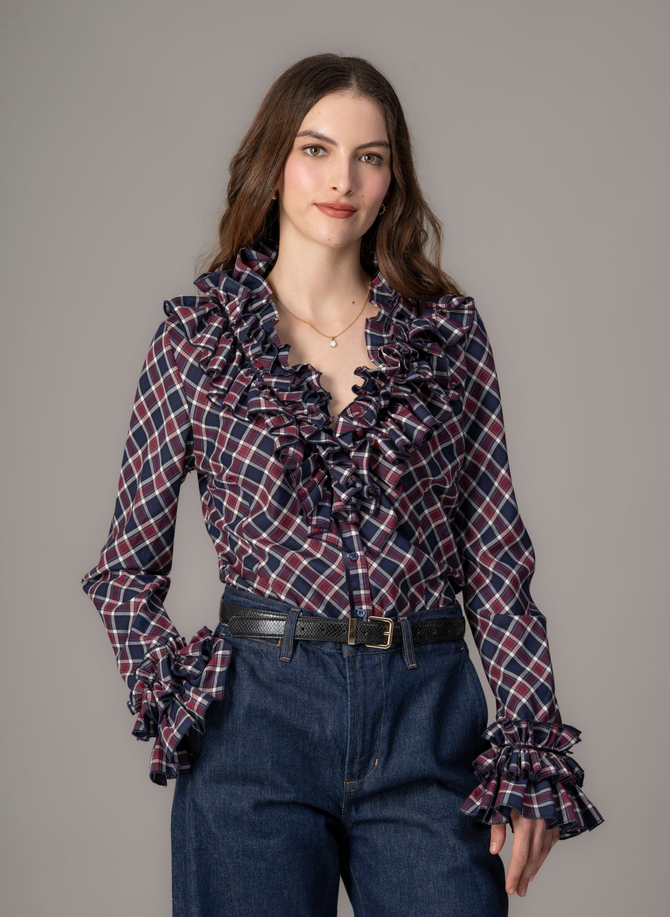 Filadelfia Tartan Check Tailored Ruffle Collar and Cuff Shirt