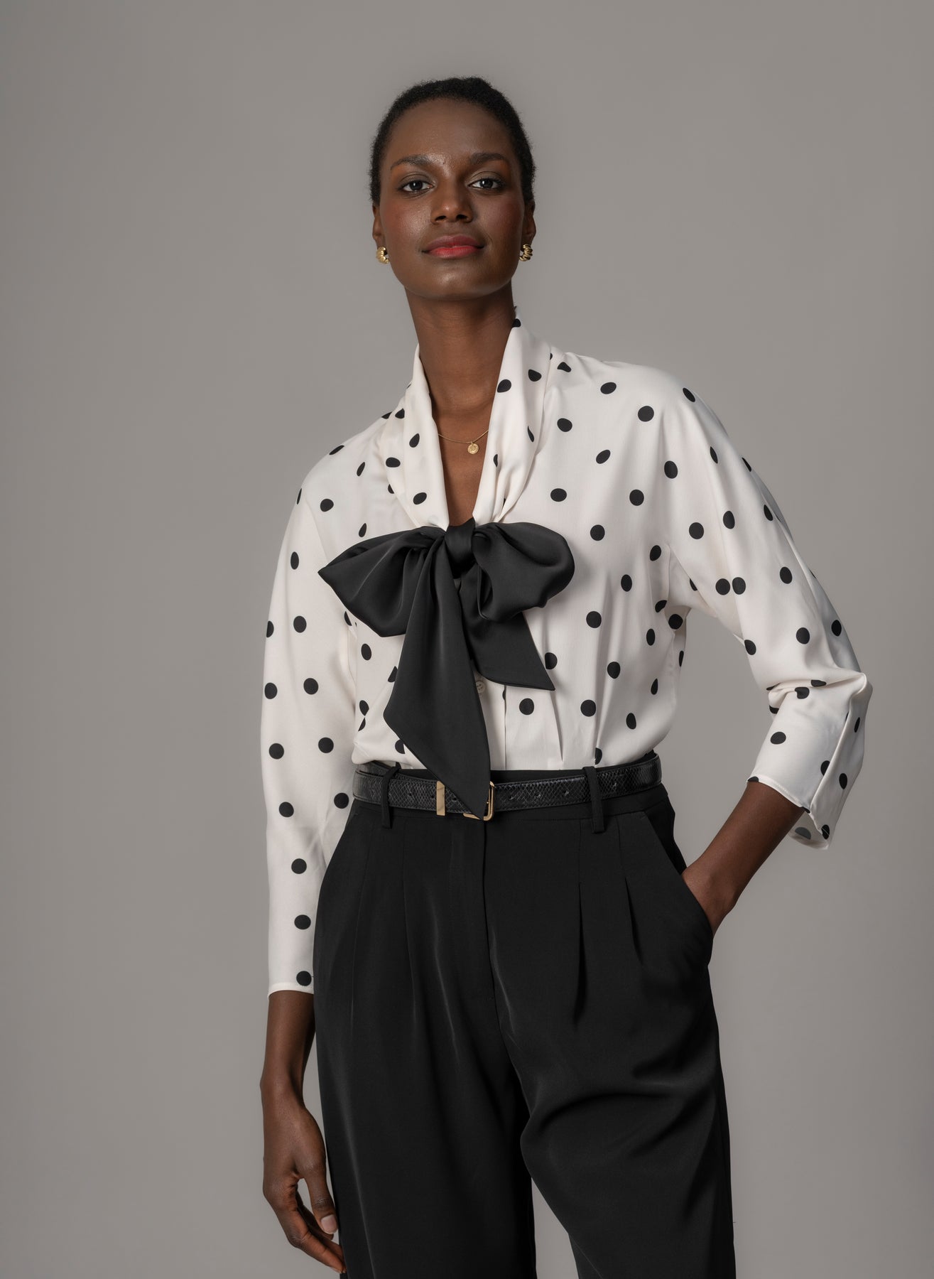Celeste Ivory & Black Polka Dot Blouse with Black Pussy Bow