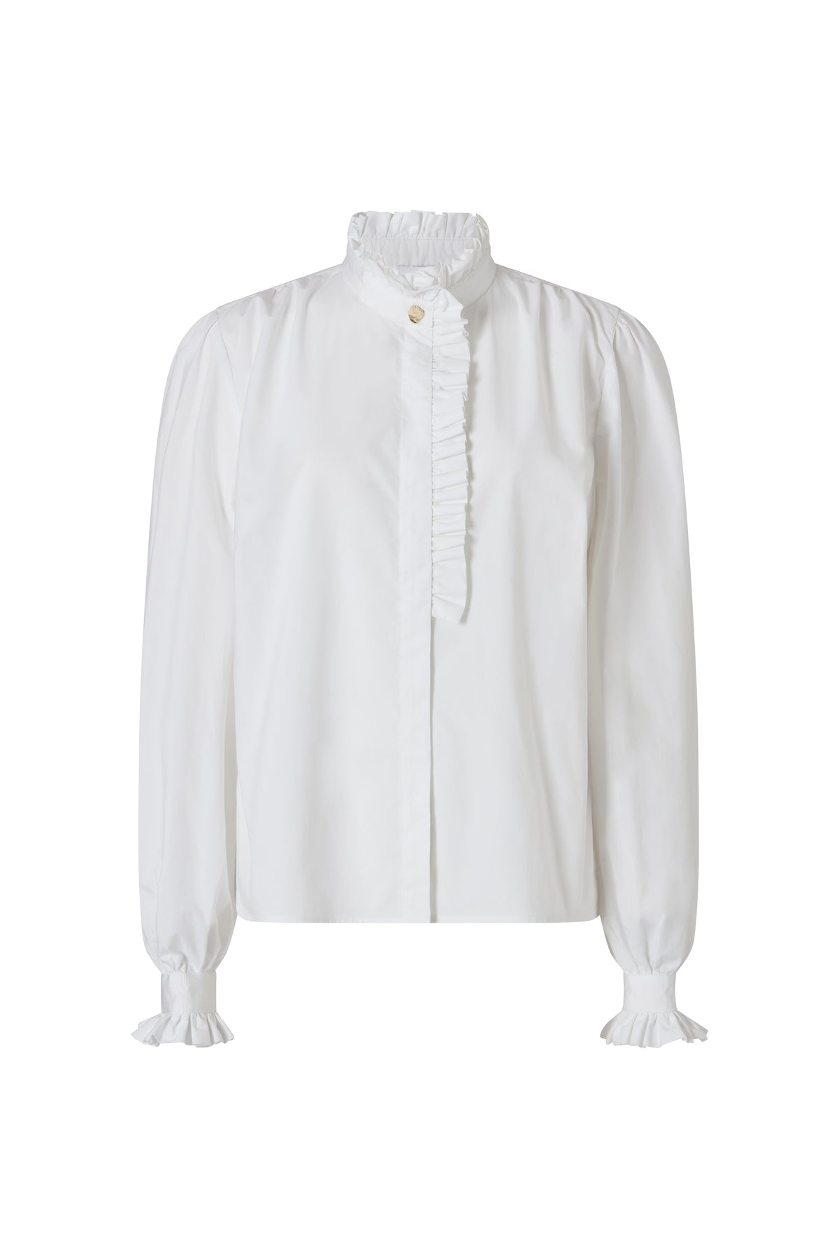 Kristen White Frill Collar Shirt with Grosgrain Trim