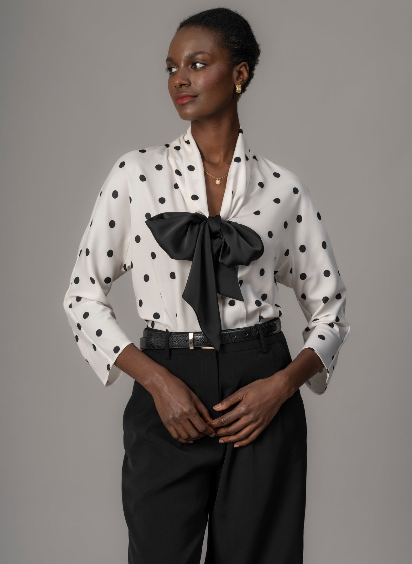 Celeste Ivory & Black Polka Dot Blouse with Black Pussy Bow