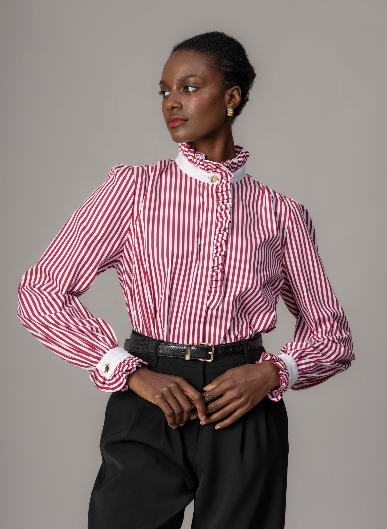 Kristen Red & White Stripe Frill Collar Shirt with Grosgrain Trim