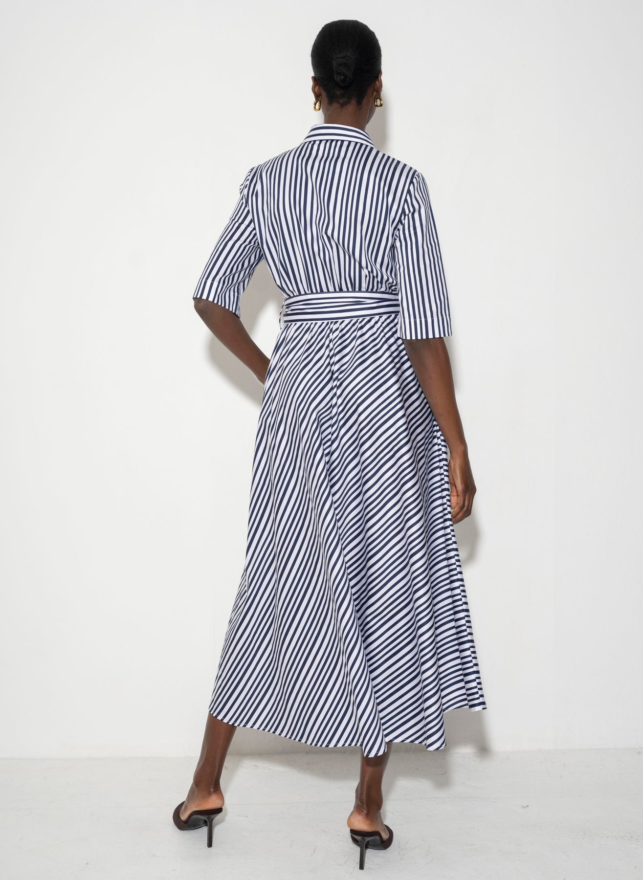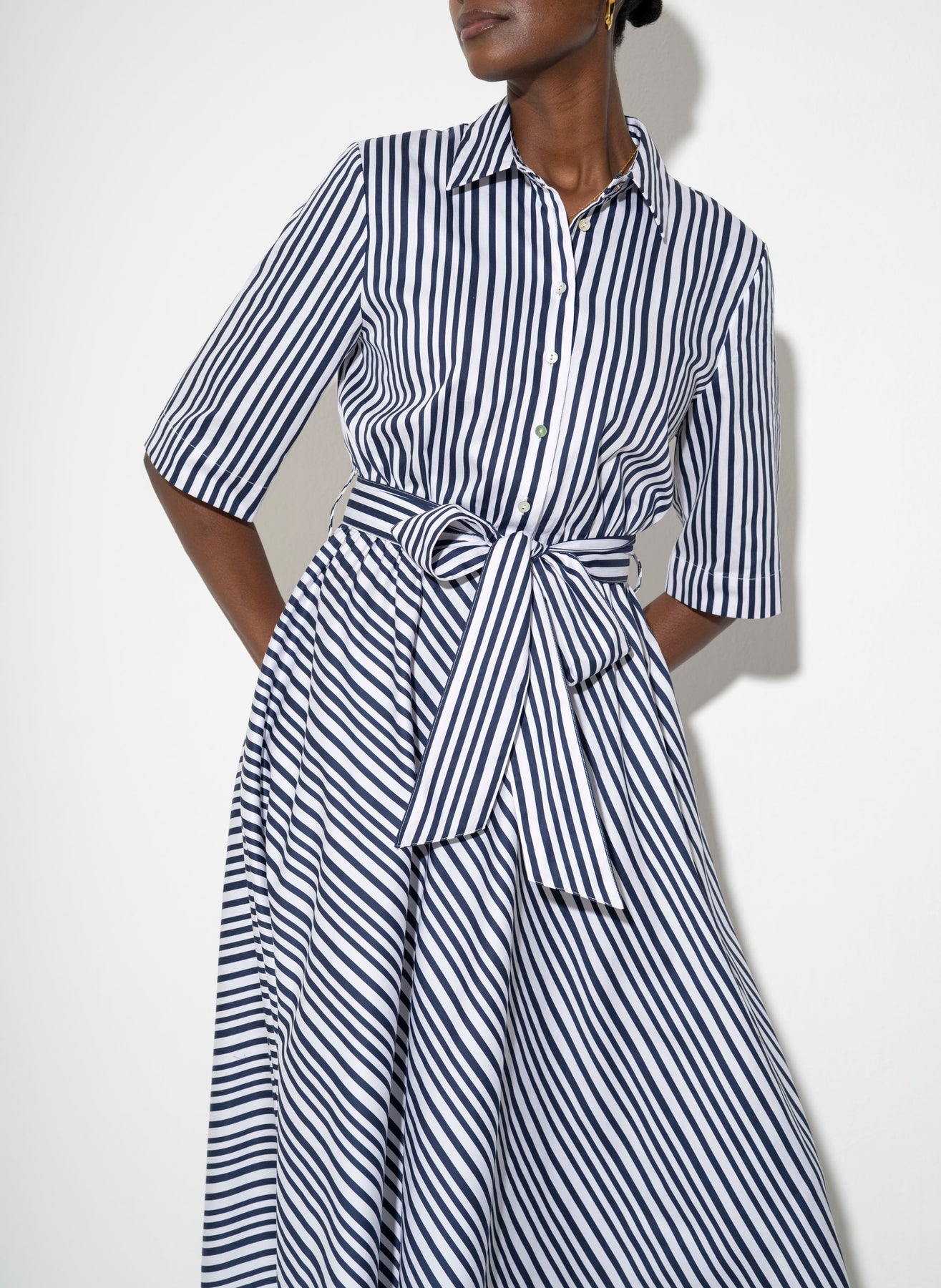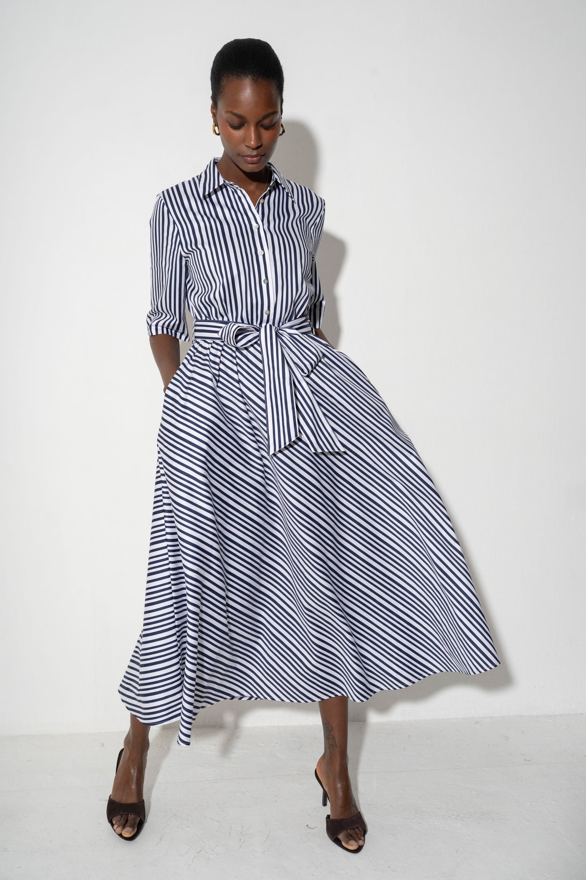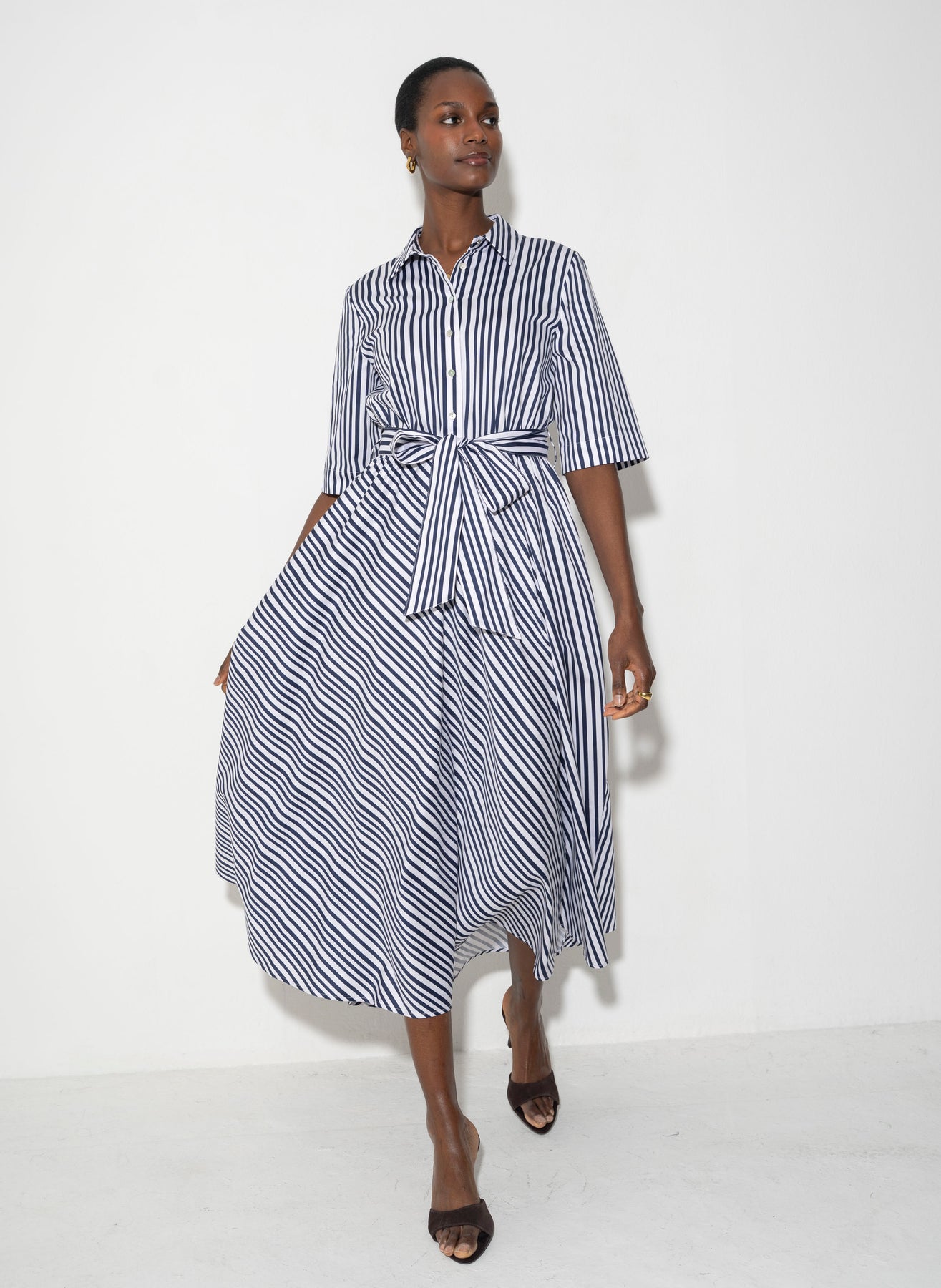 Le Marais Cotton Everyday Midi Shirt Dress in Navy Stripe