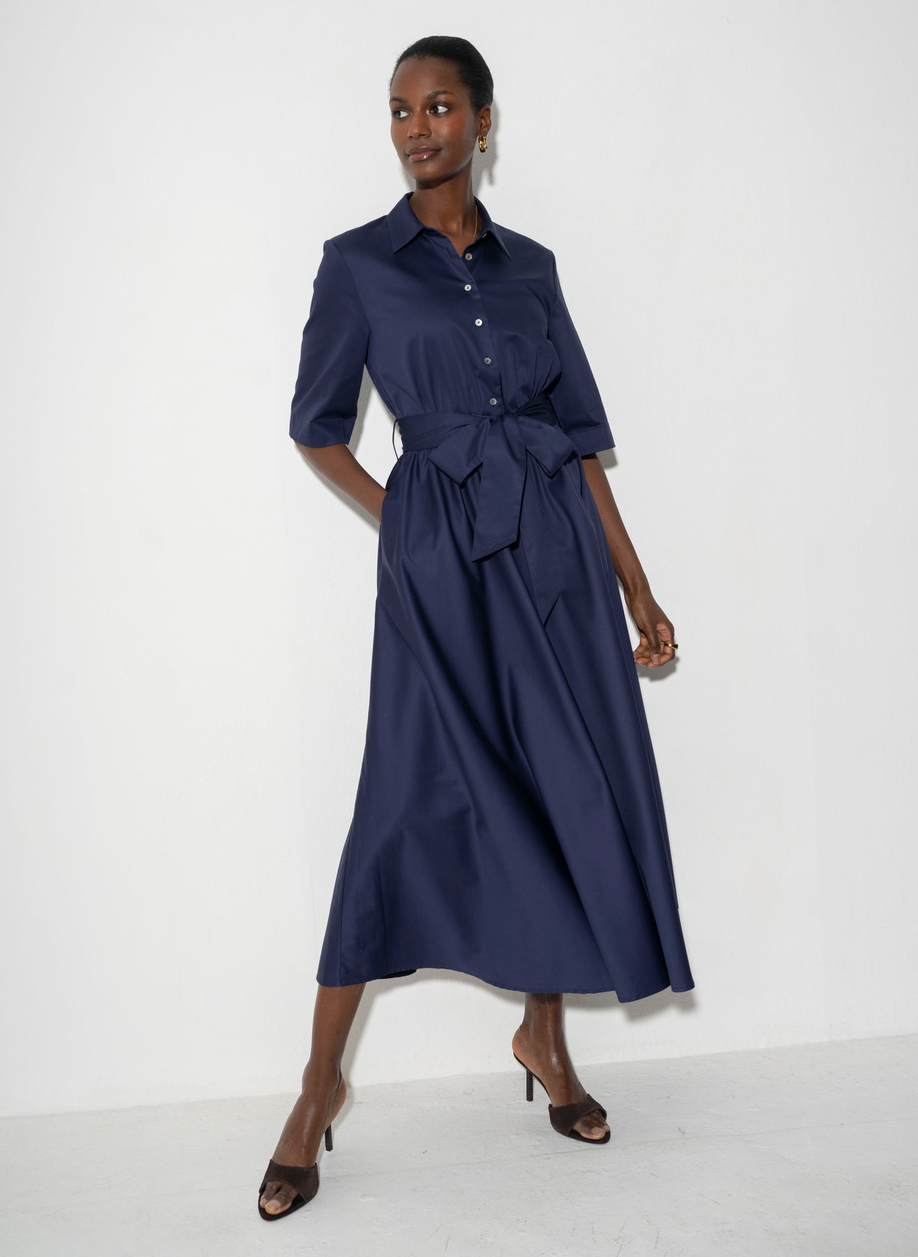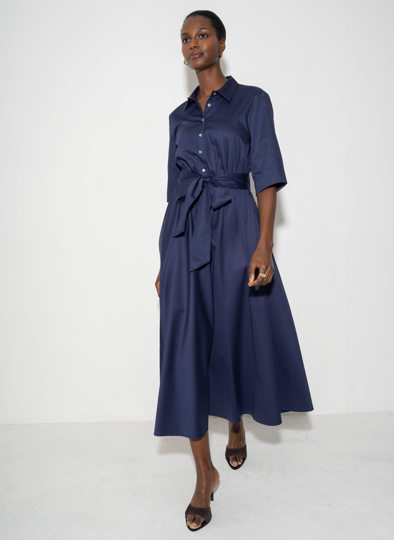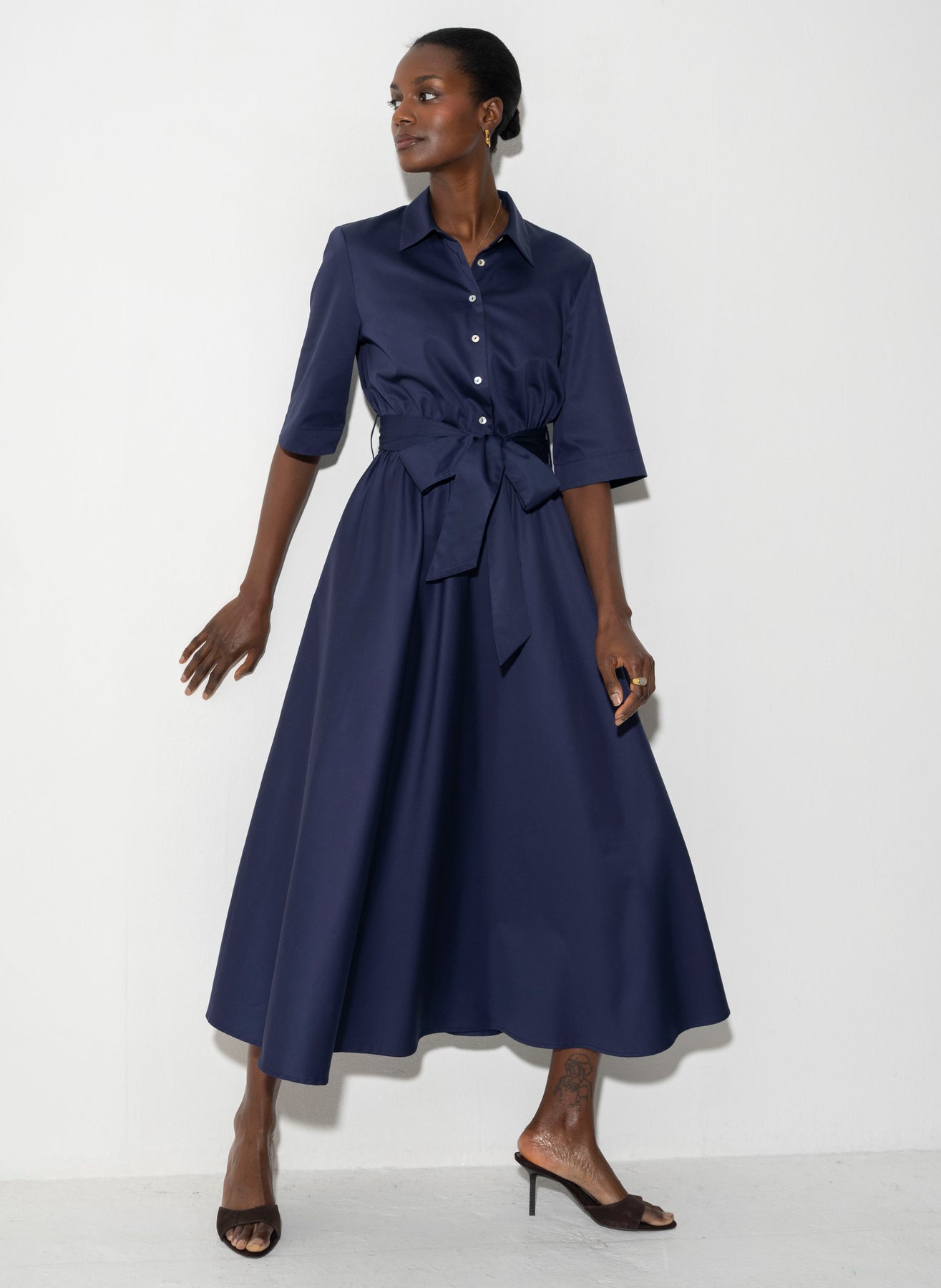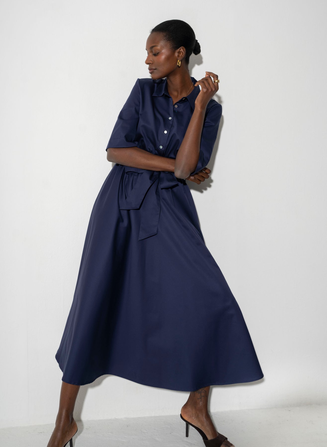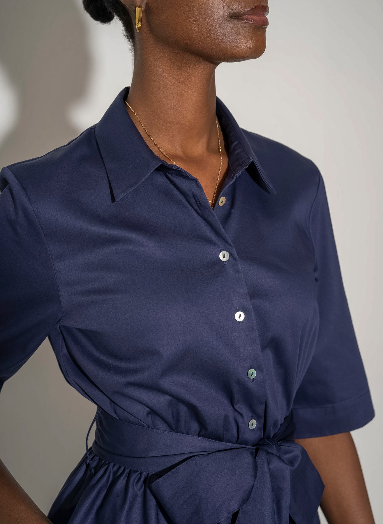 Le Marais Navy Cotton Everyday Midi Shirt Dress