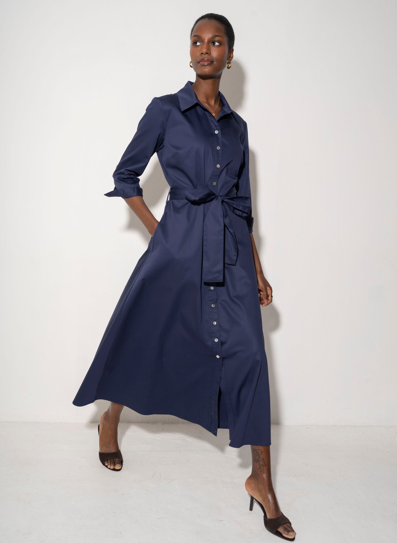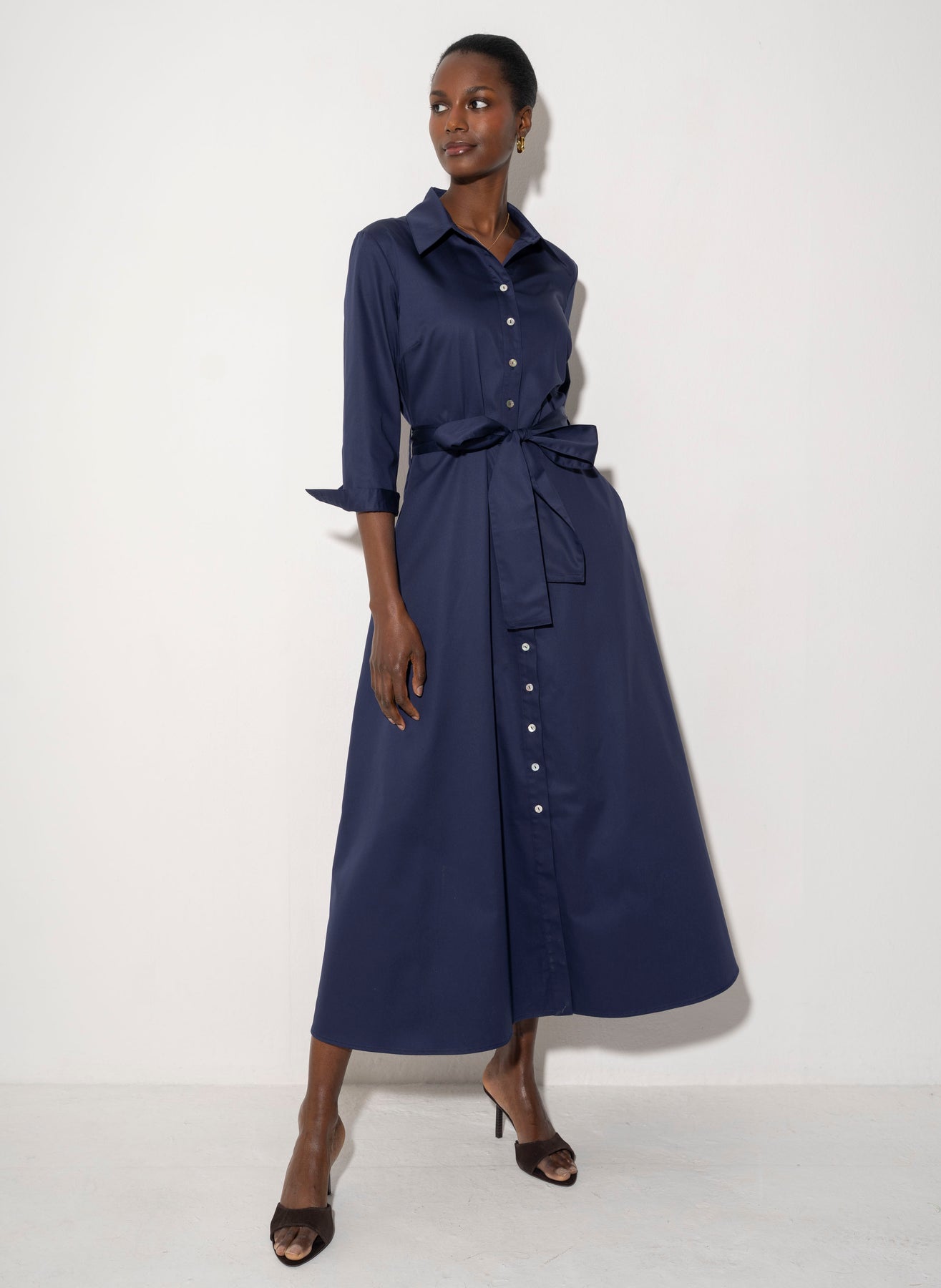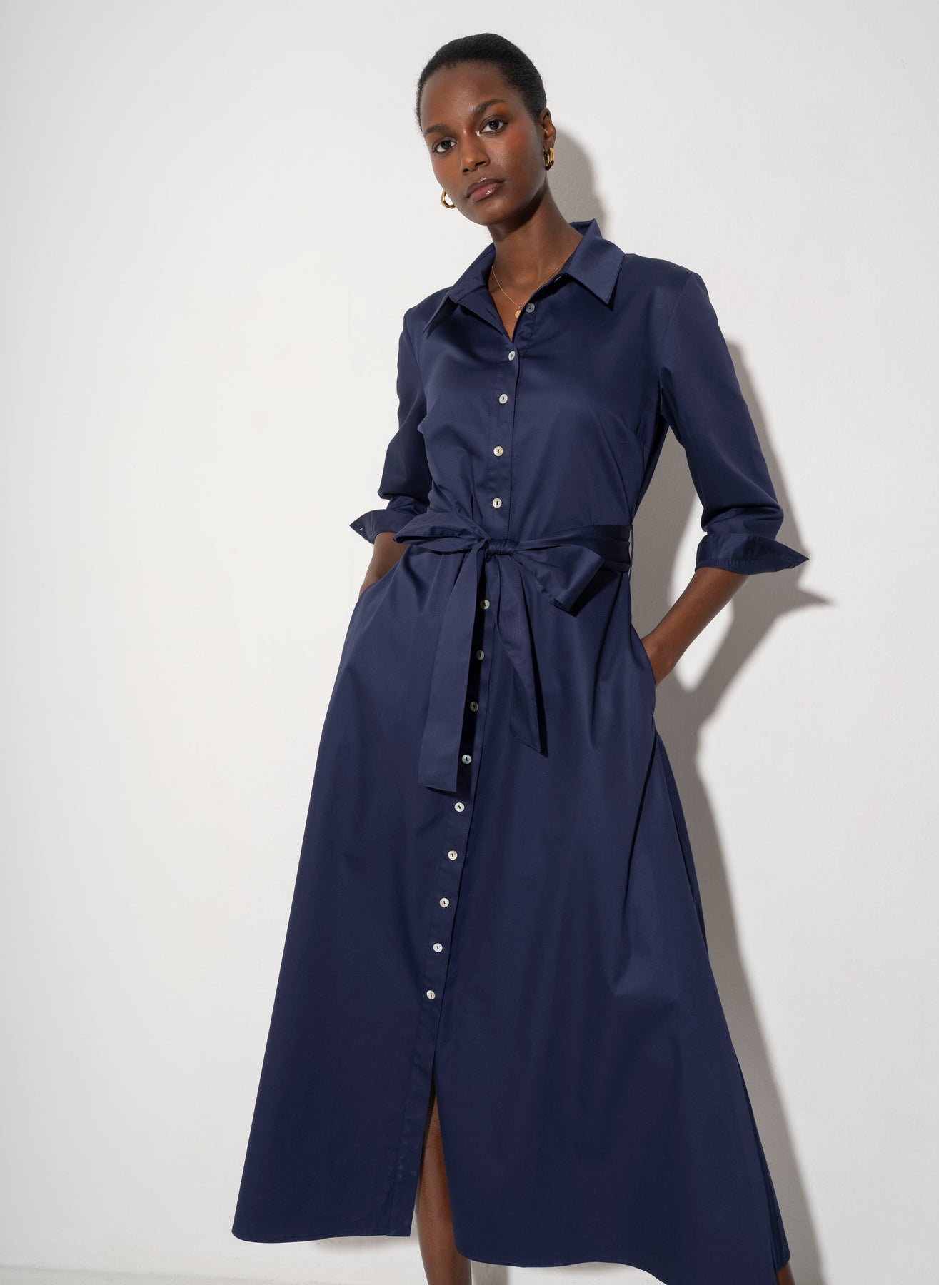 Veronica Cotton Button Down Midaxi Shirt Dress in Navy