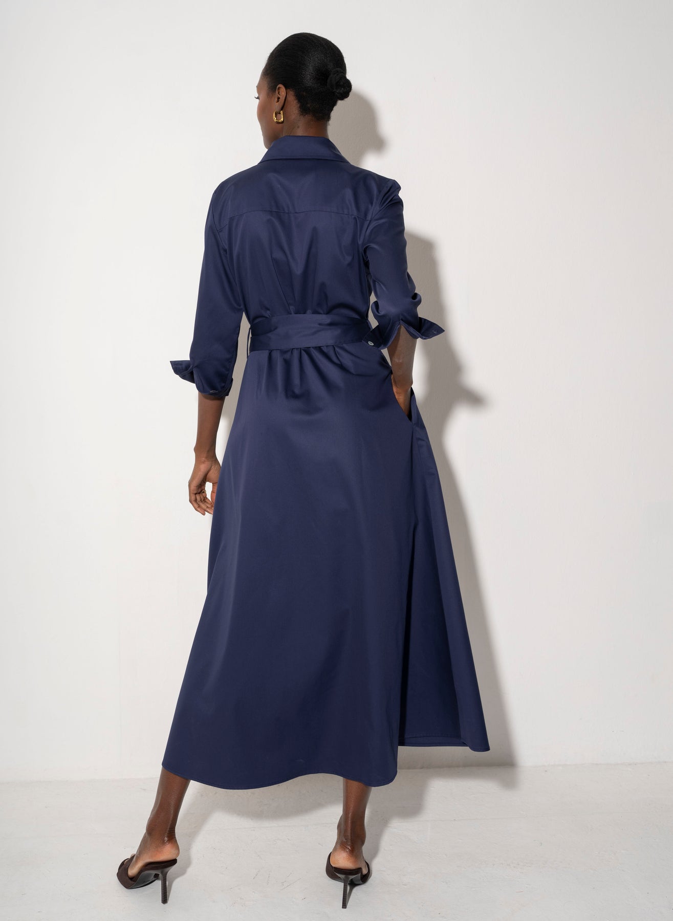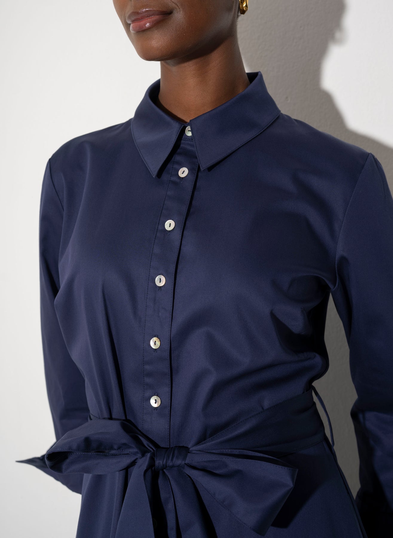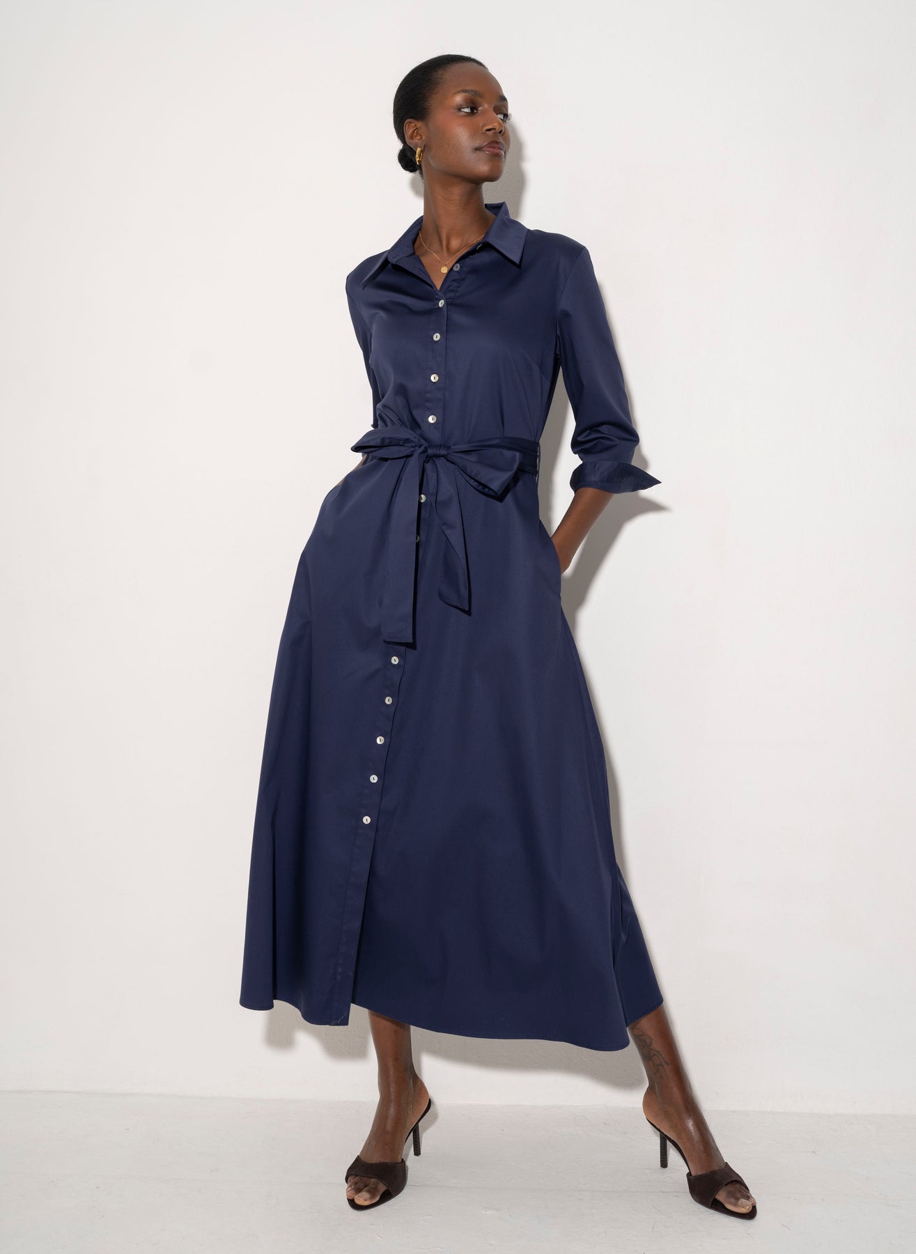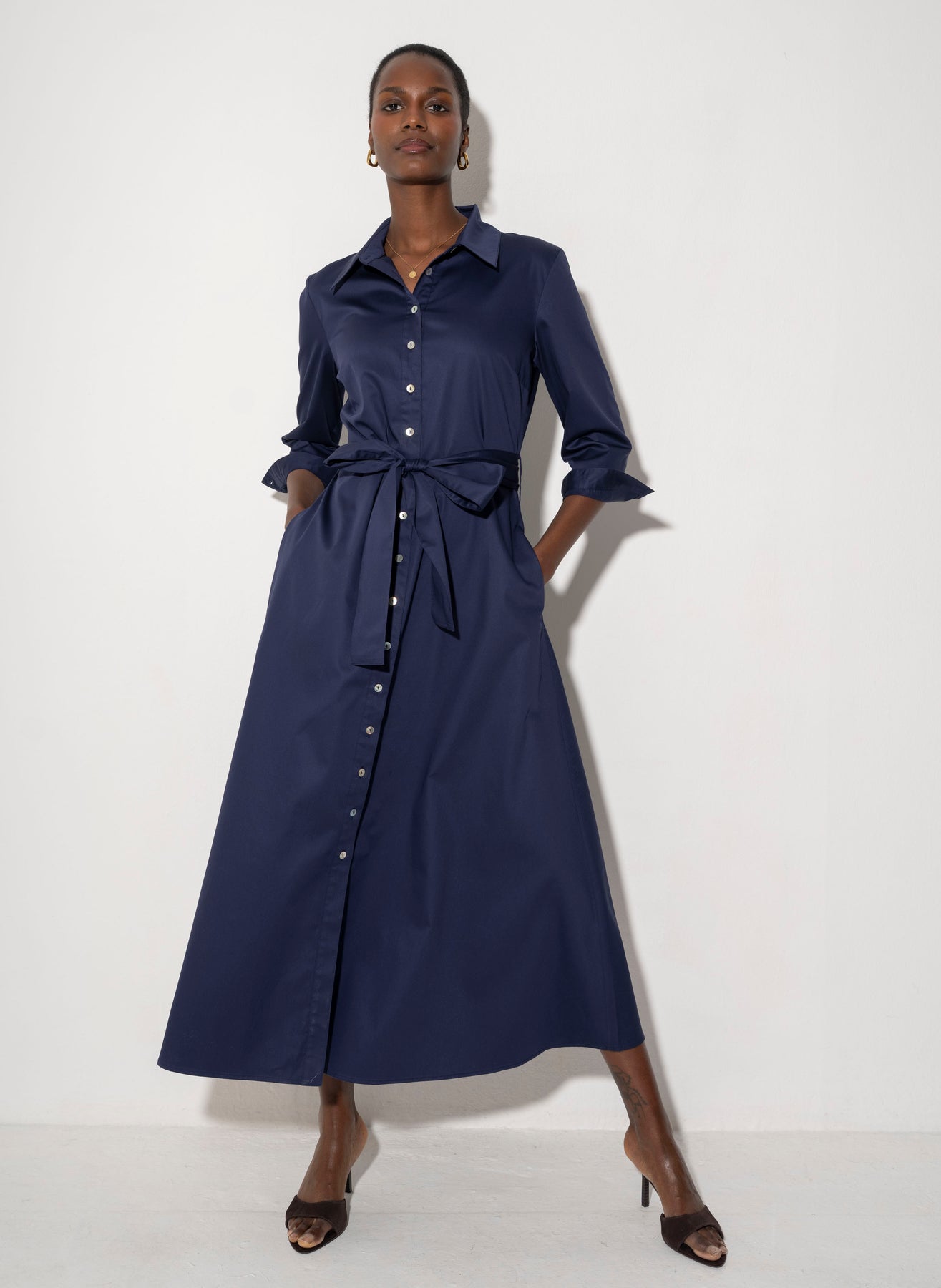 Veronica Cotton Button Down Midaxi Shirt Dress in Navy