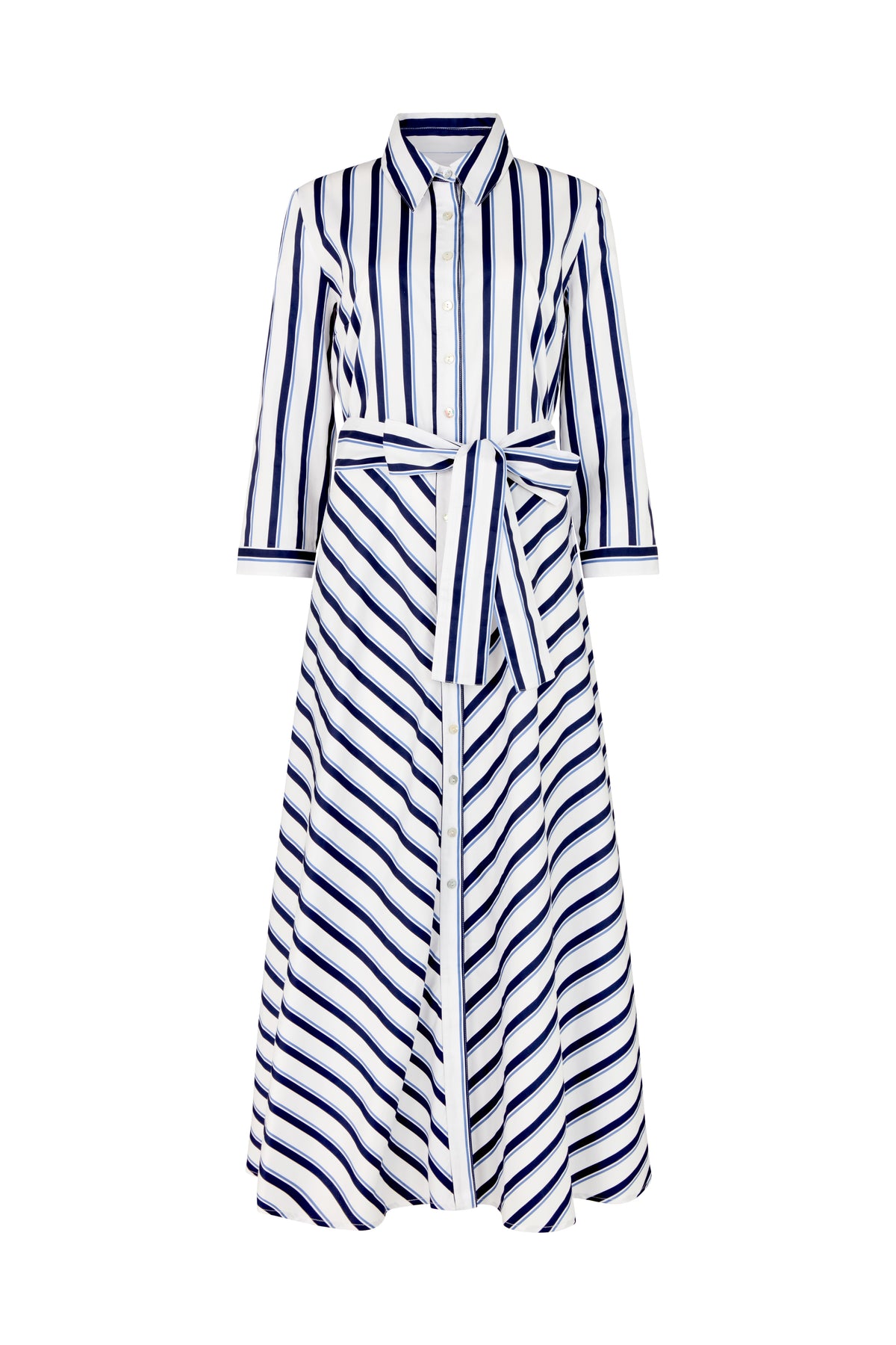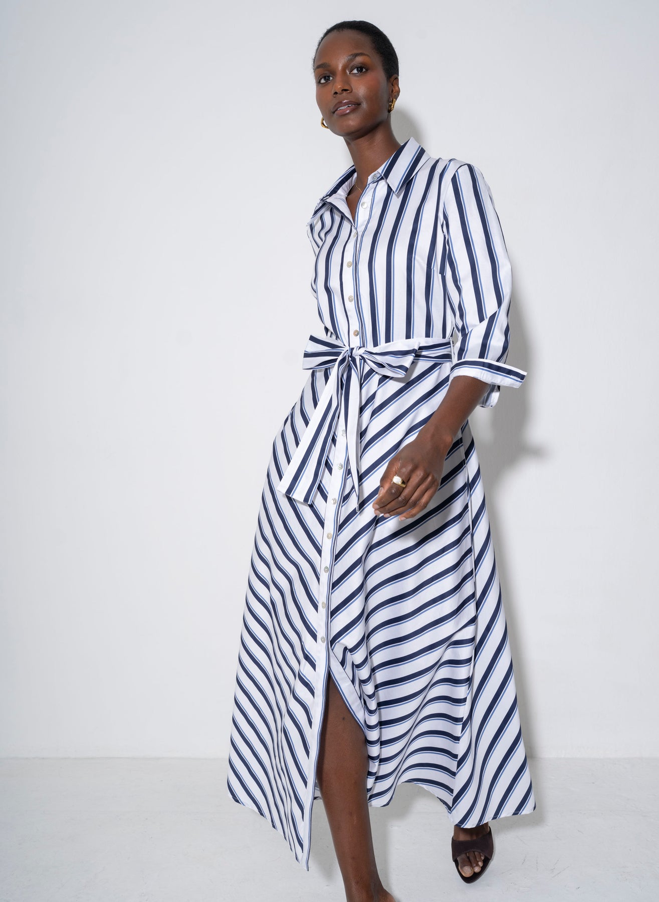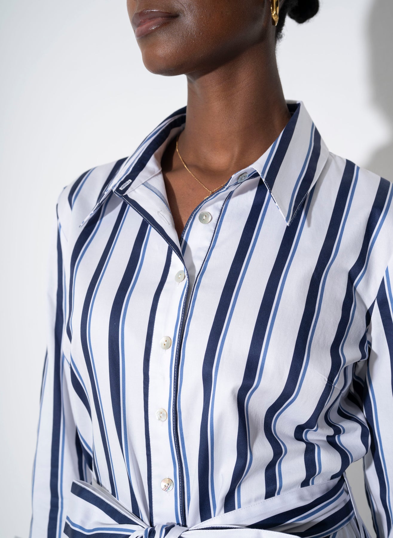 Veronica Cotton Button Down Midaxi Shirt Dress in Navy Stripe