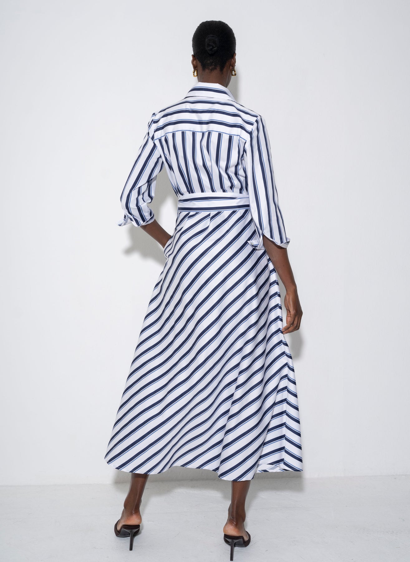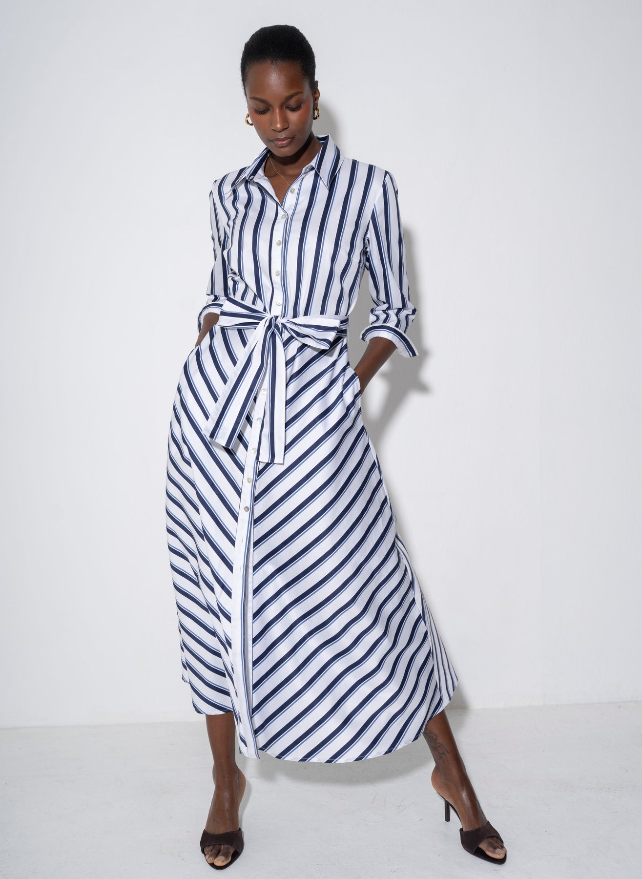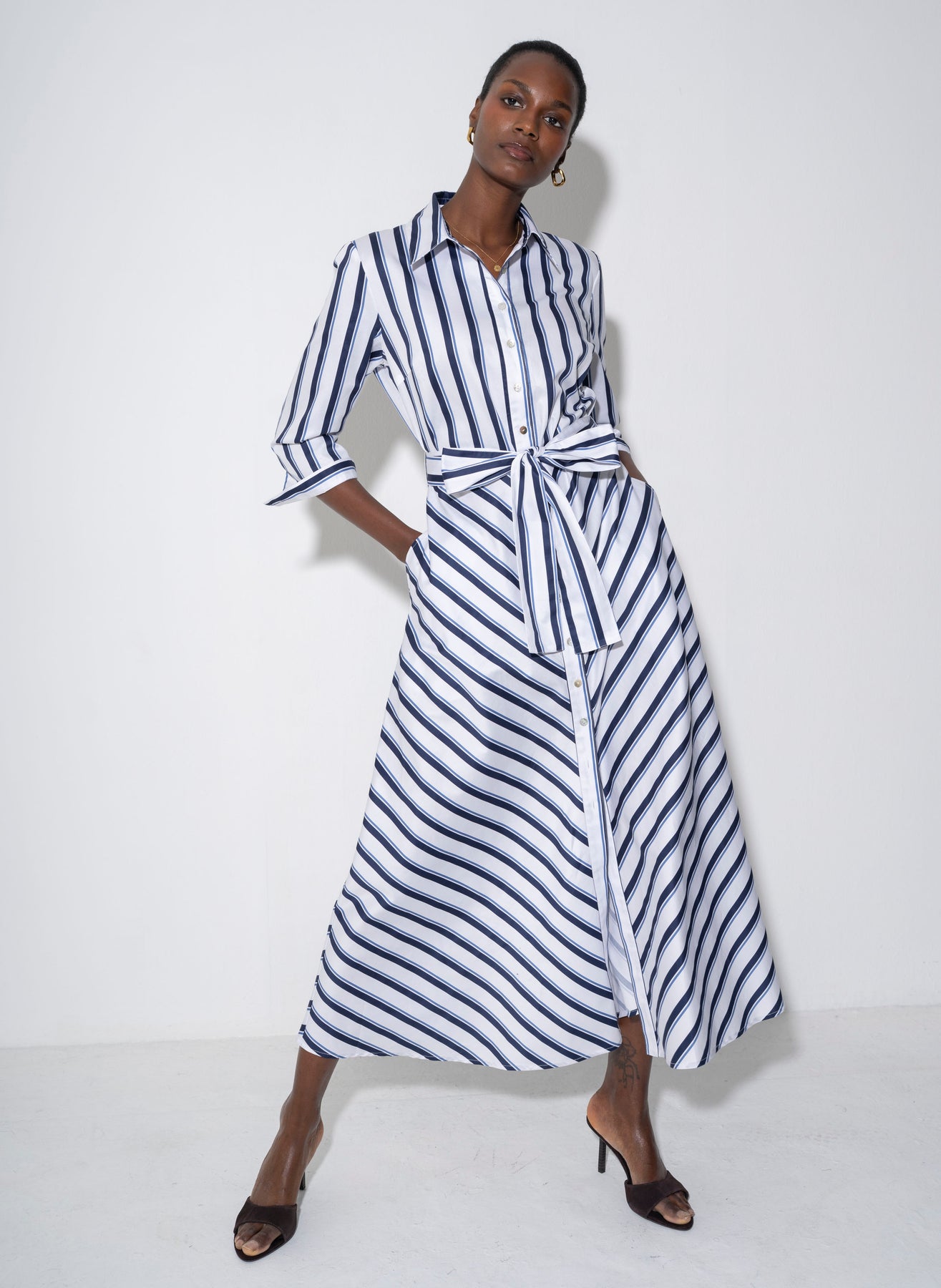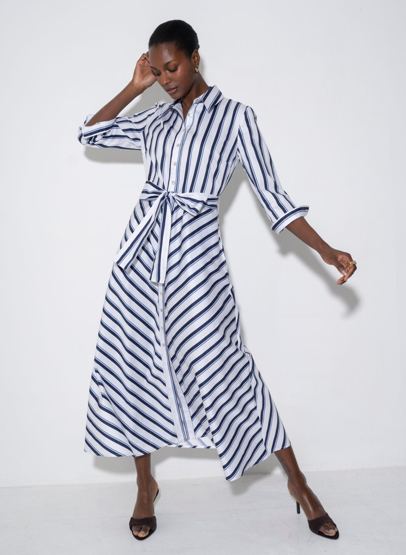Veronica Cotton Button Down Midaxi Shirt Dress in Navy Stripe