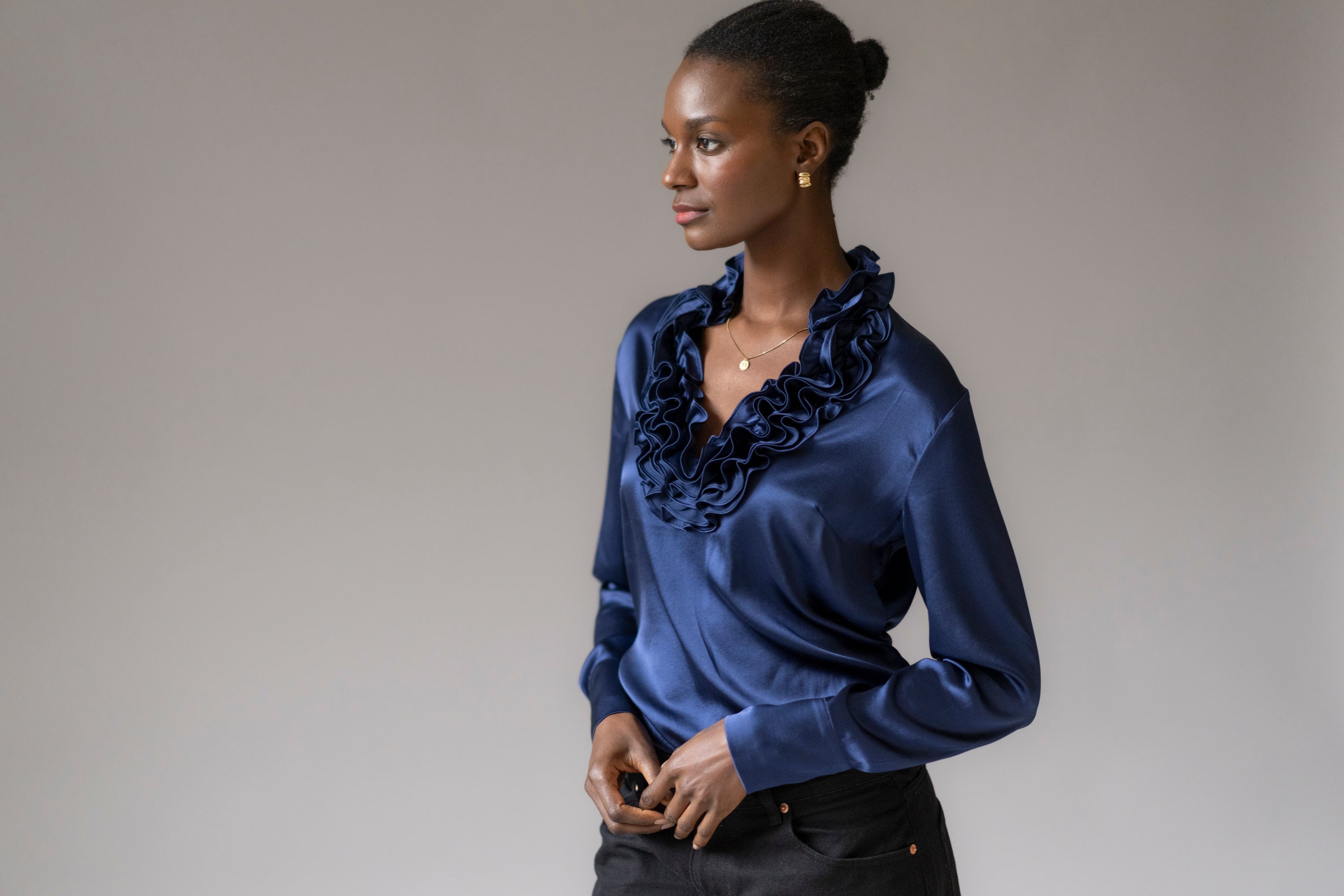 Abigail Midnight Blue Wrap Cotton Poplin Blouse