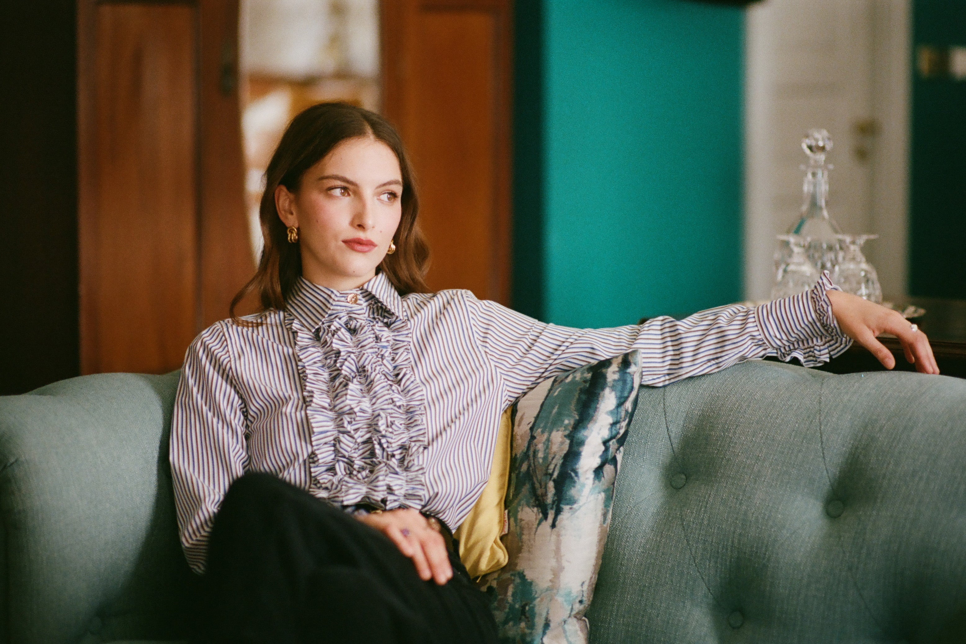 Nina Butter Yellow Longline Shirt with Gentle Frilled Collar