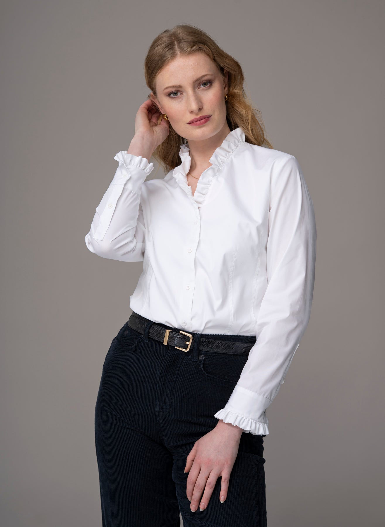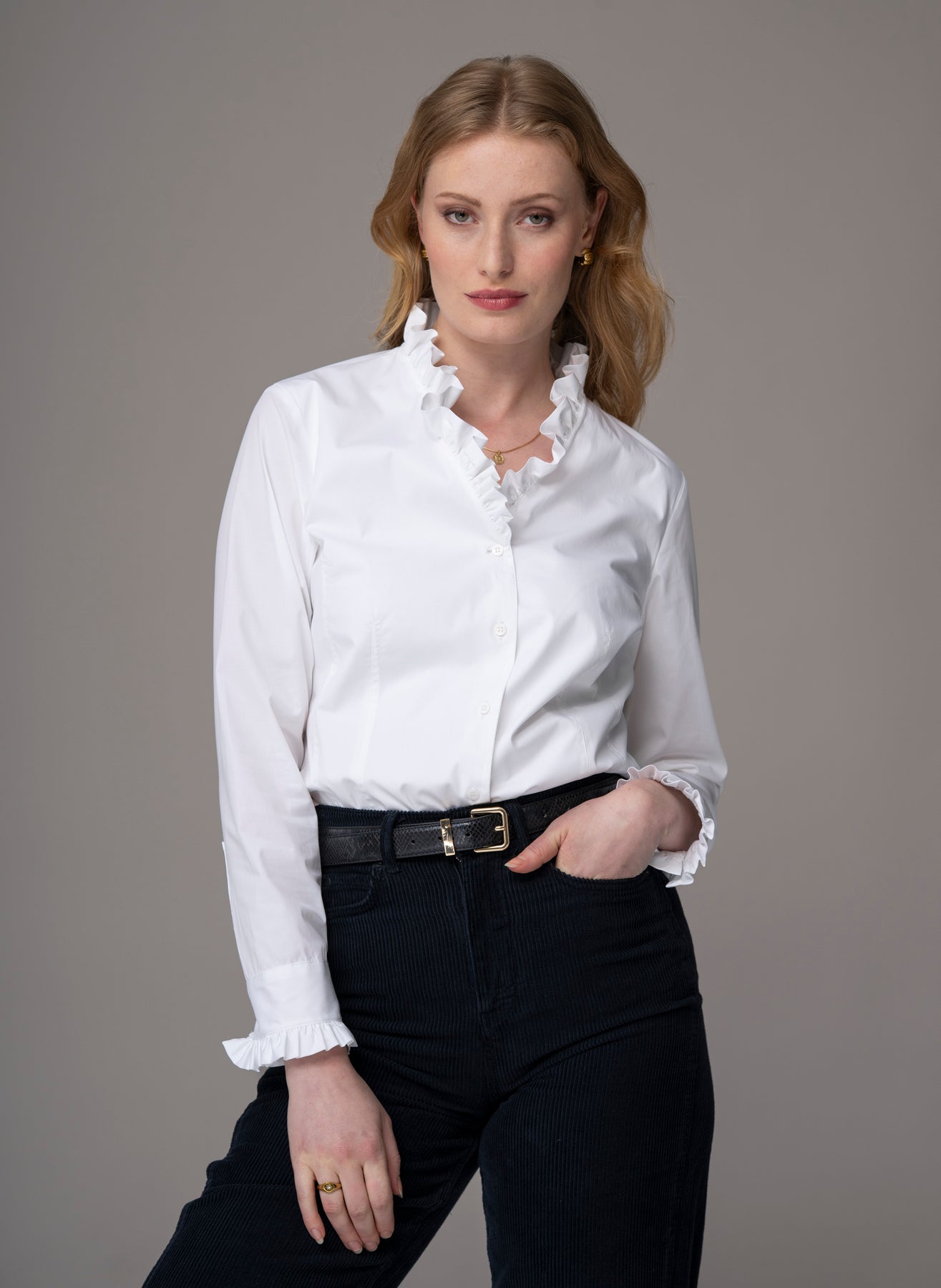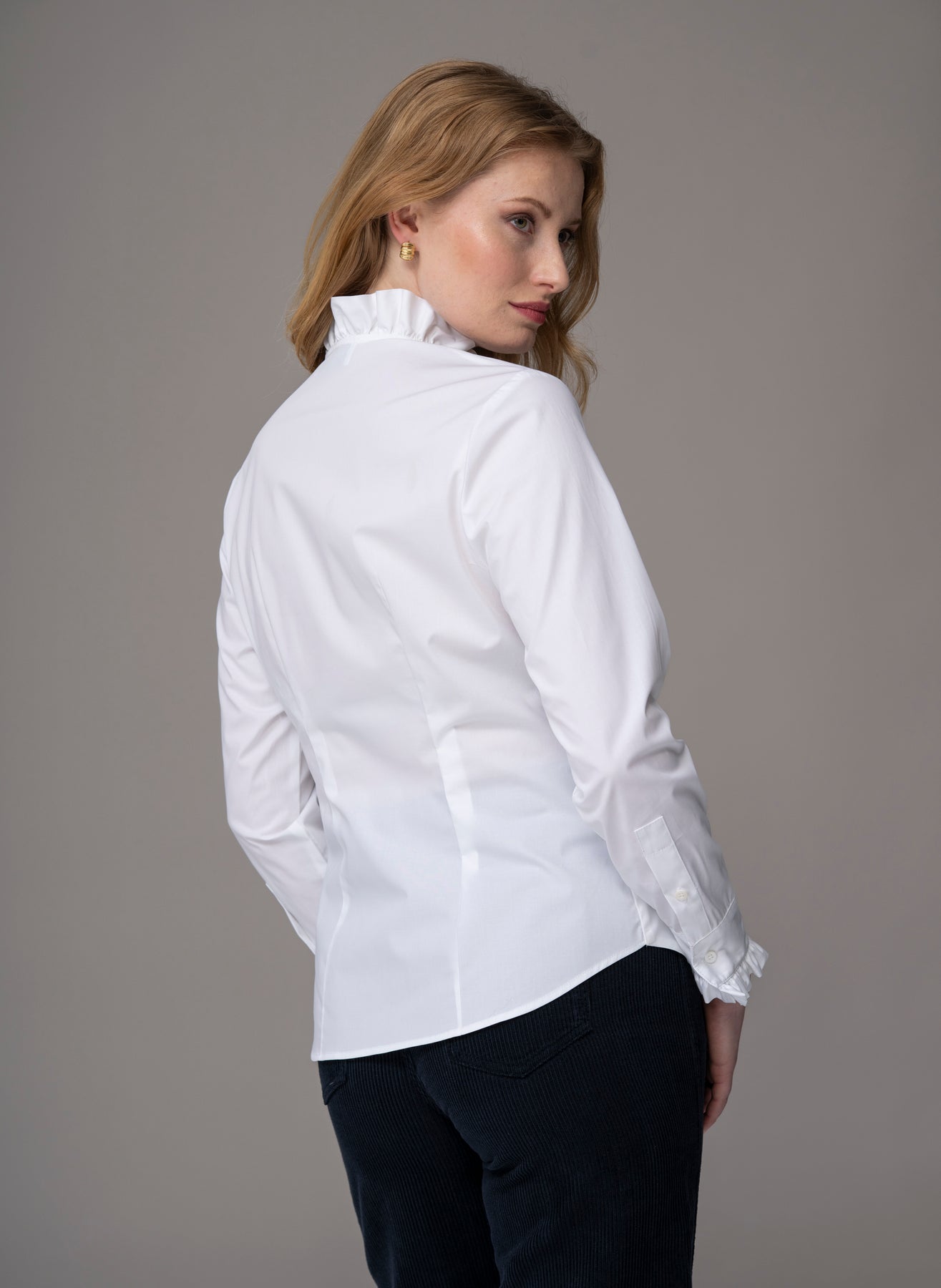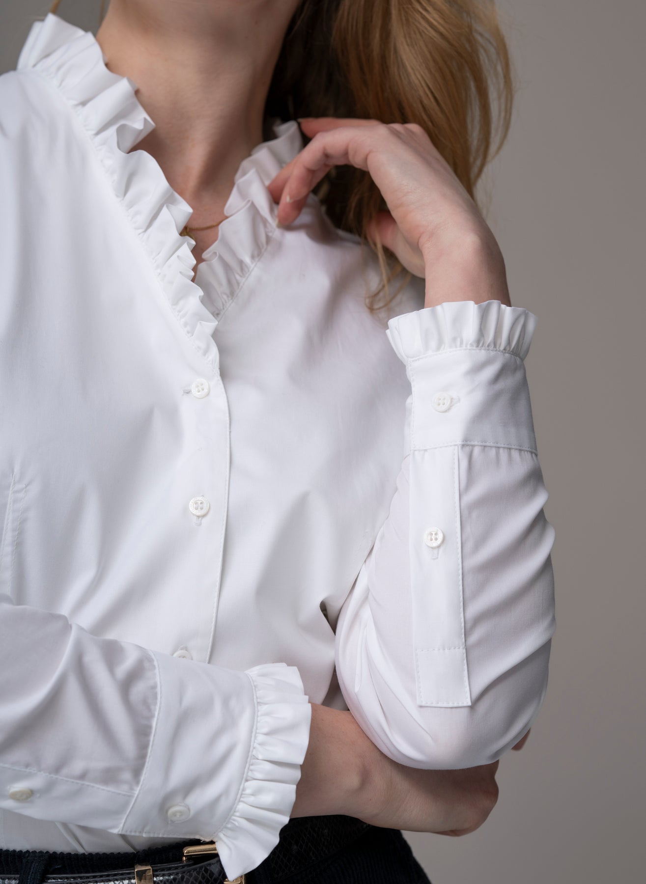 Alessia Frill V-Neckline Tailored Shirt in White Cotton Poplin