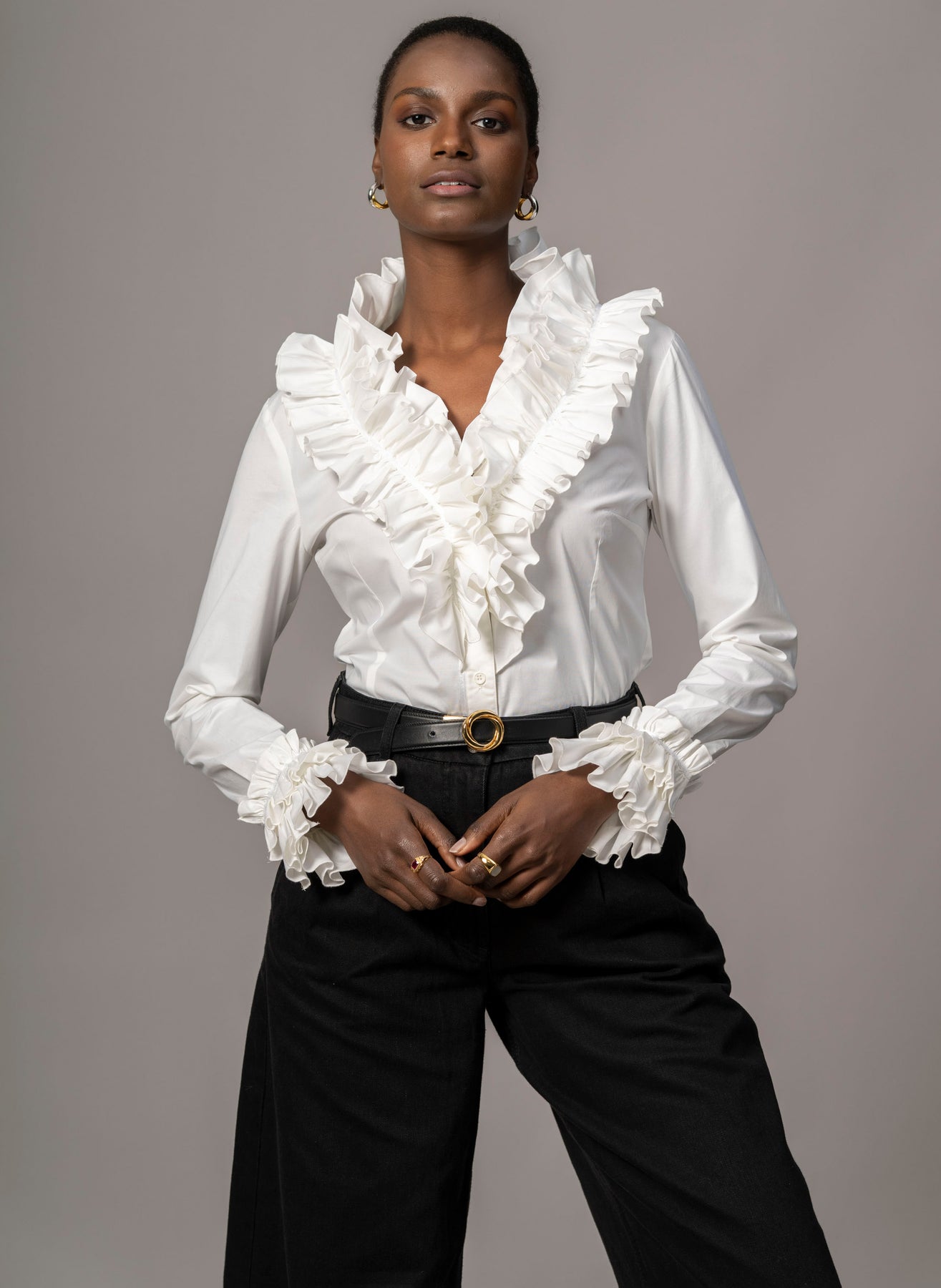 Filadelfia White Tailored Ruffle Collar and Cuff Shirt