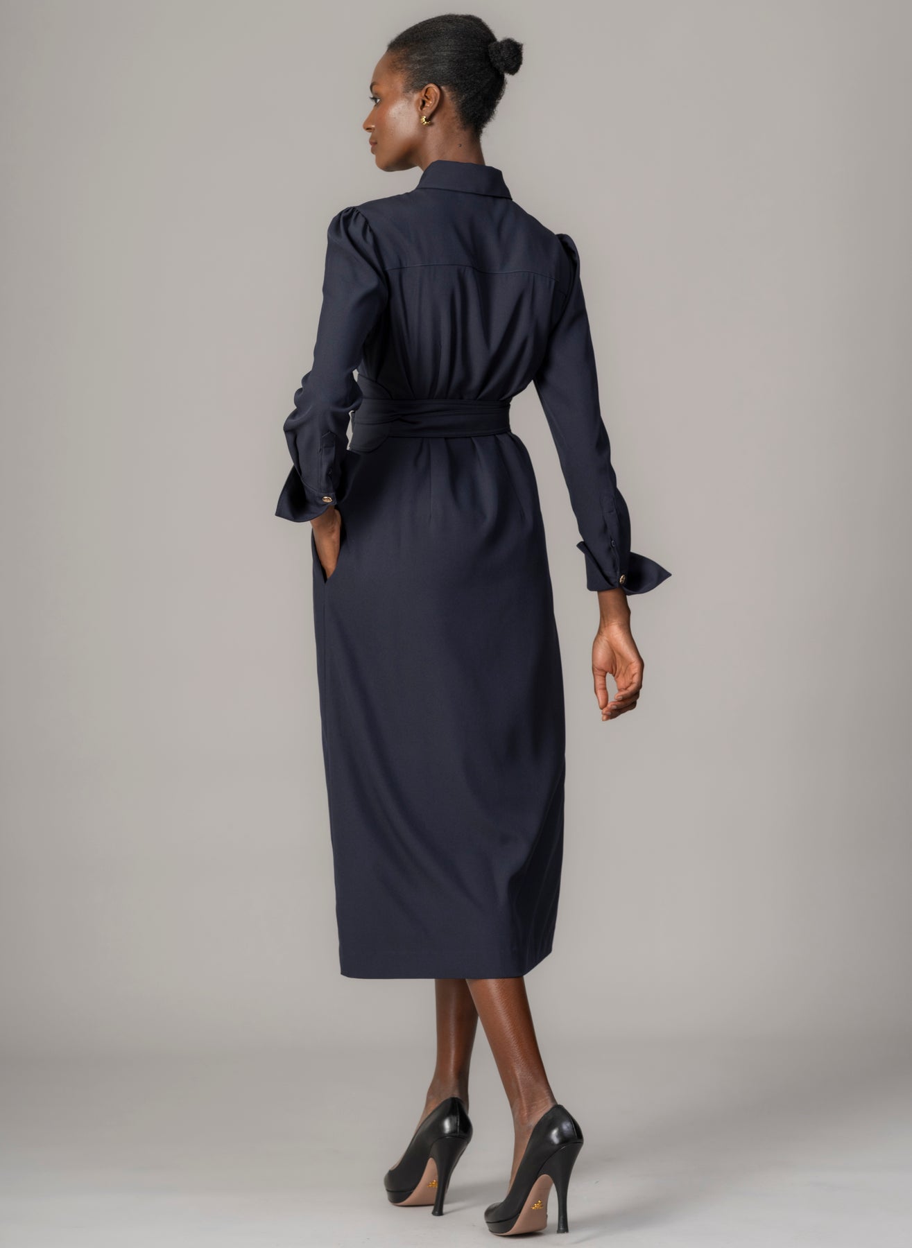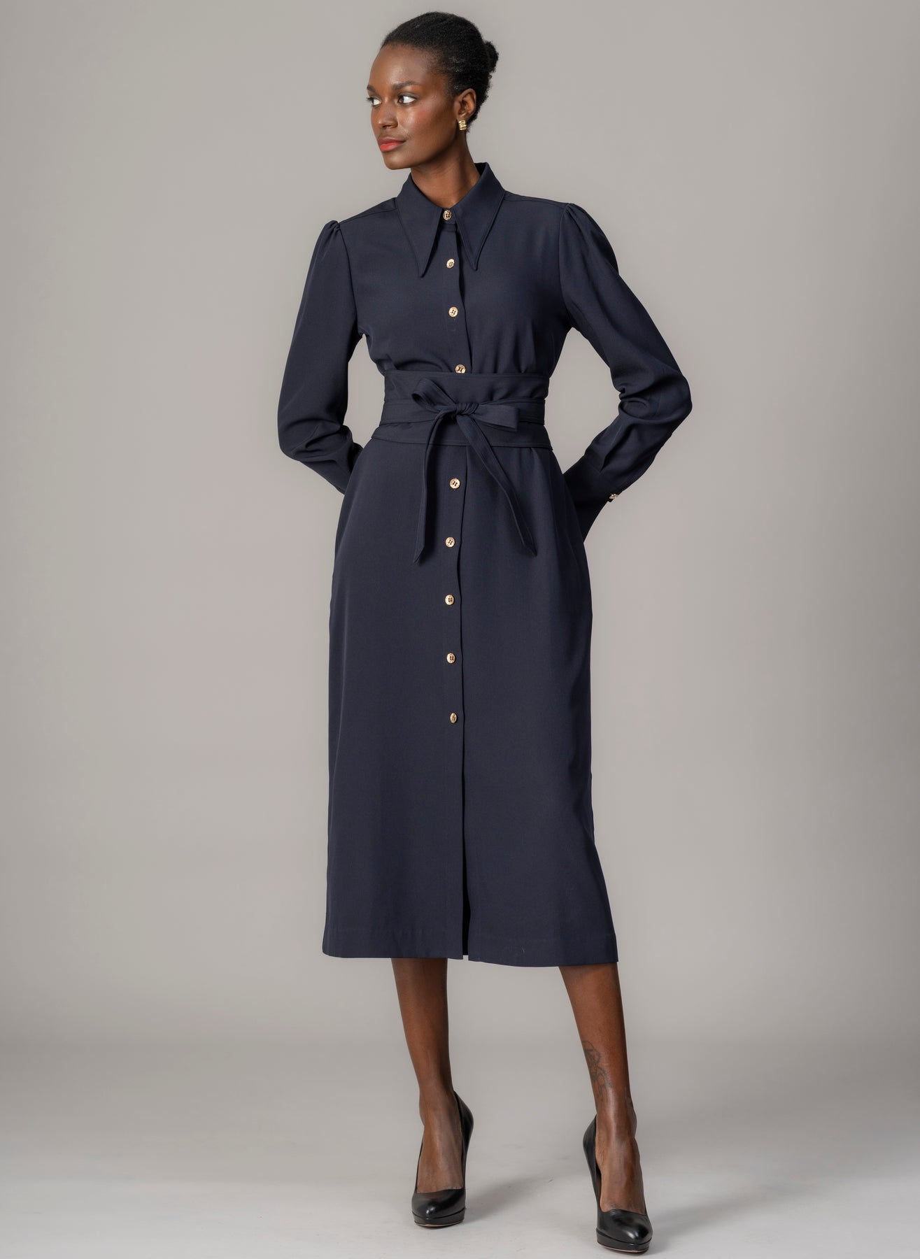 Allegra Navy Everyday Midi Shirt Dress with Obi Belt