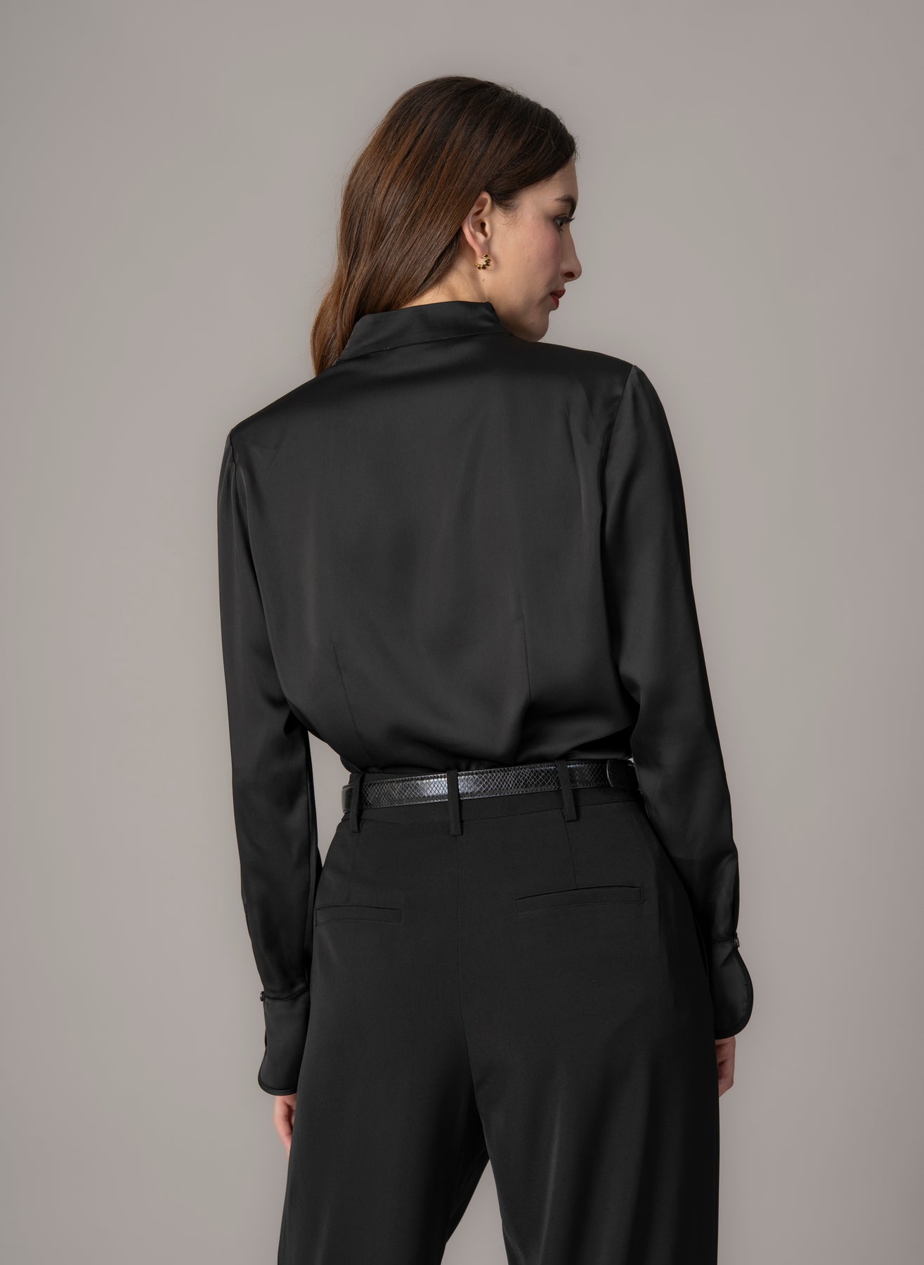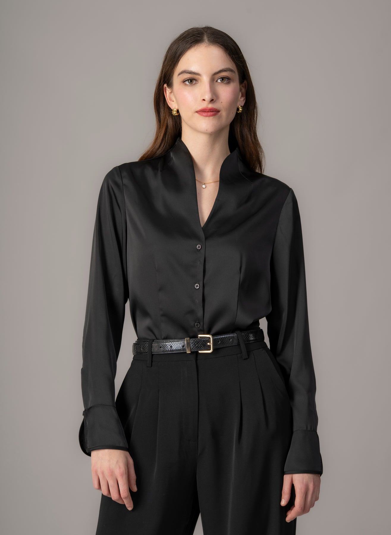 With this gorgeous tulip neck shirt, it's all about the collar which creates the most flattering of necklines. Aria, faithful to its meaning of "up in the air" sits perfectly under any jacket and works wonderfully for day or evening wear tucked into high waisted satin trousers.